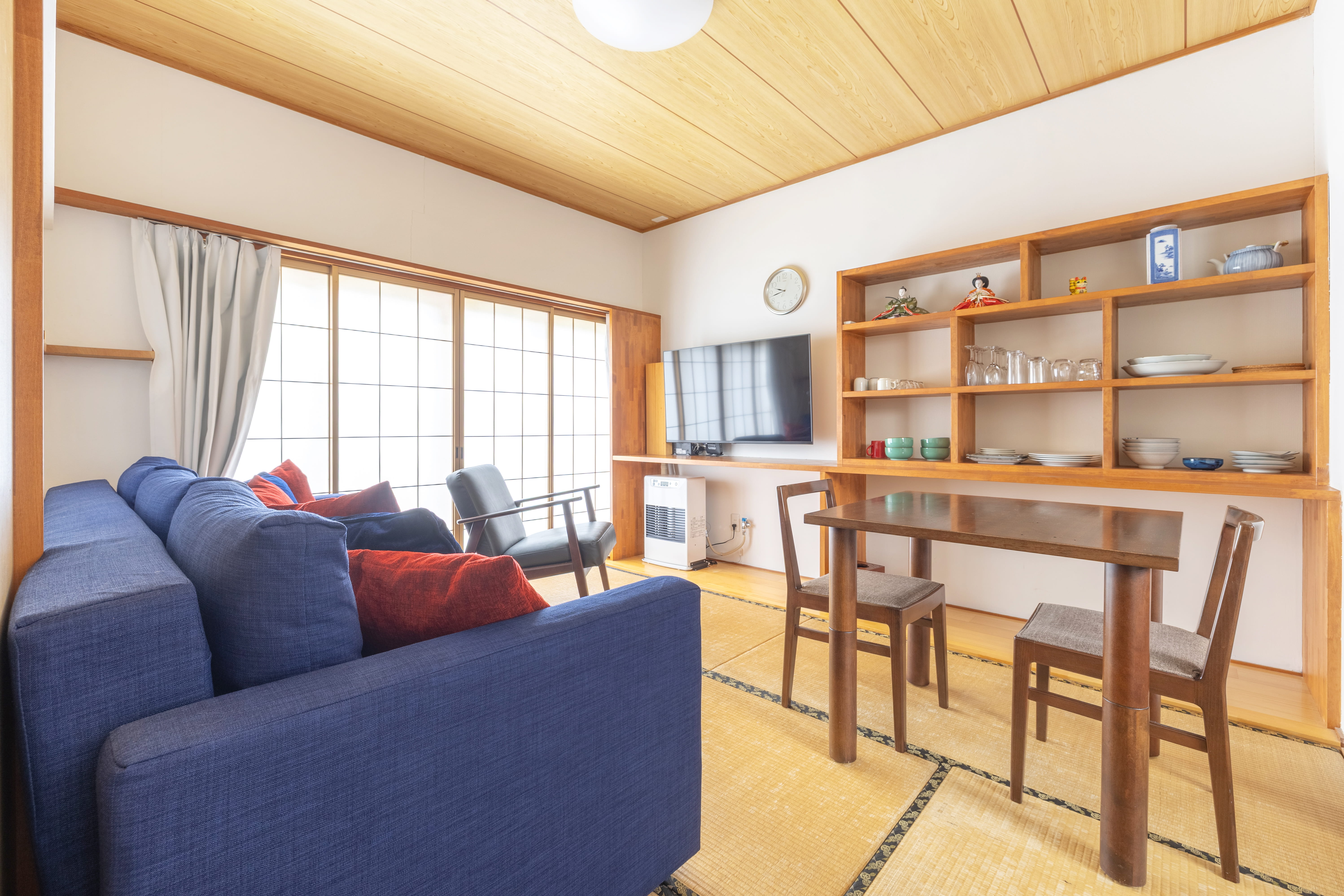 モダンなキッチン(オーブン付)、ラウンジの折りたたみ式ダブルソファベッド、大画面スマートテレビ、大型シャワーブース、トイレ2つ、洗濯機、乾燥機。村の中心までは徒歩8分。唐沢スキー場のチケット売り場、フィーダーチェアリフト、長坂ゴンドラ行きのバス停、スパリーナ、最寄りの温泉まではすべて徒歩5分です。近くにレストランもありますが、一番近いパン屋は小道を1分歩いたところにあります。